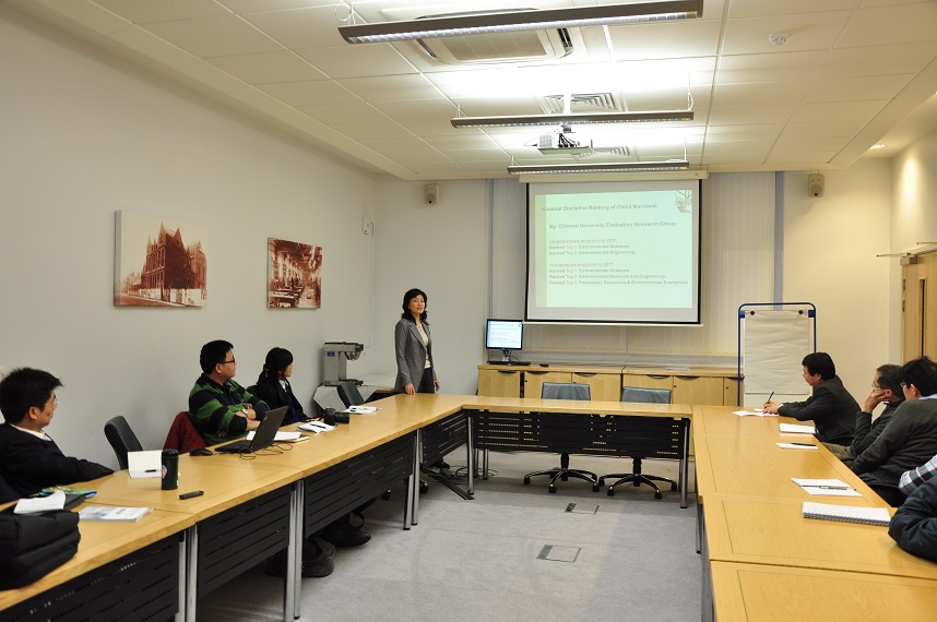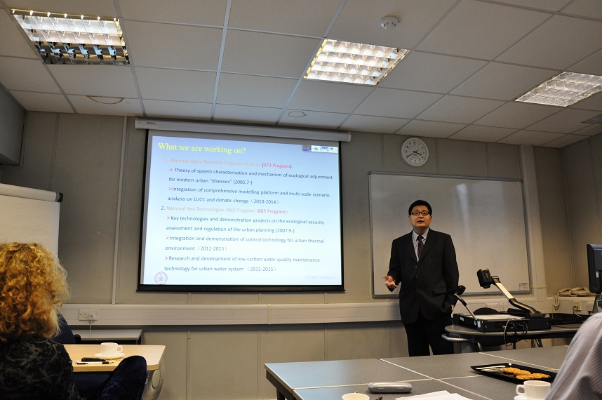2013年1月23日 ~ 1月24日,与利物浦大学工学院的周建国老师领导下的科研团队继续进行了深入的交流。周建国老师团队的研究人员对潮汐能开发、河流动力建模等方向的最新研究进展做了汇报。学院王烜、曾维华两位老师分别介绍了水资源和河流研究所、环境规划与管理研究所的情况,王烜老师做了白洋淀水项目方面详细的学术报告,史江红老师就我院实施的国际研究生项目做了介绍,发放了学院册子、国际河流大会、国际硕士项目等方面的宣传材料。两方在各自研究领域、研究方向等方面进行了深入的探讨与交流,并希望以后能有更多机会进行项目合作与学生互派。